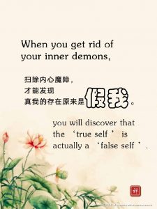 Words of Wisdom | ‘True Self’ Is ‘False Self’ Published on October 22, 2020 When you get rid of your inner demons, you will discover that the ‘true self’ is actually a ‘false self’. 扫除内心魔障,才能发现真我的存在原来是假我。 – Master Jun Hong Lu, Words of Wisdom Volume 8