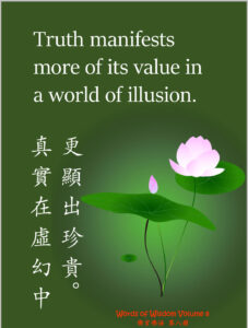 Words of Wisdom | Truth Published on October 13, 2020 Truth manifests more of its value in a world of illusion. 真实在虚幻中更显出珍贵。 – Master Jun Hong Lu, Words of Wisdom Volume 8