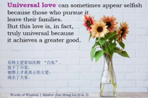 Universal love can sometimes appear selfish because those who pursue it leave their families. But this love is, in fact, truly universal because it achieves a greater good.