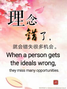 Words of Wisdom | When A Person Gets The Ideals Wrong Published on October 26, 2020 When a person gets the ideals wrong, they miss many opportunities. 理念错了,就会错失很多机会。 – Master Jun Hong Lu, Words of Wisdom Volume 8