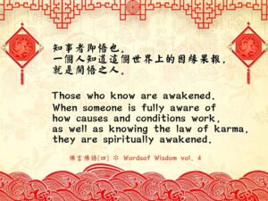 知事者即悟也。一个人知道这个世界上的因缘果报, 就是开悟之人。