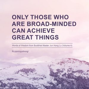 Words of Wisdom Words of Wisdom | Broad-minded 10/11/2020 | Words of Wisdom Words of Wisdom < Words of Wisdom Only those who are broad-minded can achieve great things. 心胸宽广,才能做大事。 Master Jun Hong Lu, Words of Wisdom Volume 4 < Words of Wisdom