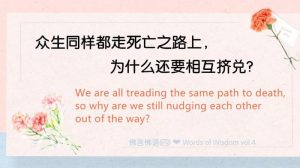 Words of Wisdom Words of Wisdom | Death 07/09/2020 | Words of Wisdom Words of Wisdom < Words of Wisdom We are all treading the same path to death, so why are we still nudging each other out of the way? 众生同样都走在死亡之路上, 为什么还要相互挤兑? Master Jun Hong Lu, Words of Wisdom Volume 4 < Words of Wisdom