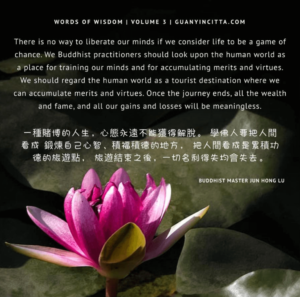 We should regard the human world as a tourist destination where we can accumulate merits and virtues.